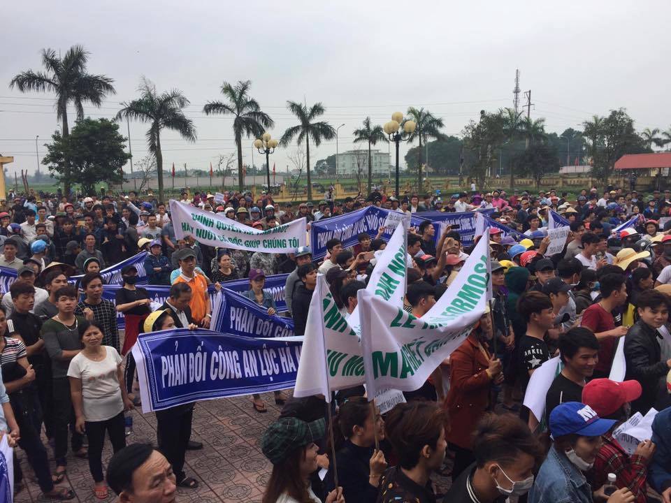 Hàng ngàn người dân nơi đây kéo đến UBND huyện Lộc Hà phản đối