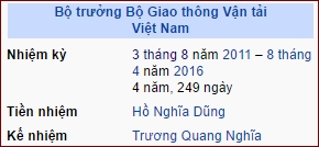 Ông Đinh La Thăng là Bộ trưởng Bộ GTVT từ ngày 03.08.2011 đến ngày 08.04.2016
