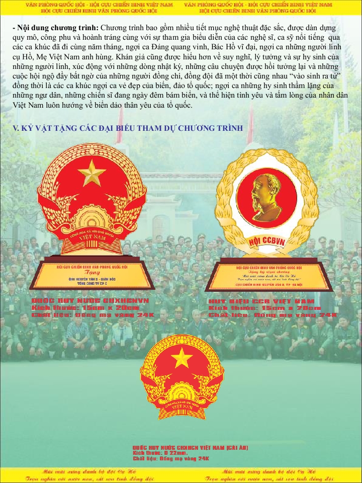Kết thúc hành trình, Đoàn đại biểu sẽ tham dự Lễ dâng hương báo công tại Lăng Chủ tịch Hồ Chí Minh, nhà riêng Đại tướng Võ Nguyên Giáp, tượng đài các AHLS Bắc Sơn. Tiếp kiến lãnh đạo Đảng, Nhà nước tại Phủ Chủ tịch / Văn phòng Quốc Hội / Văn phòng chính phủ ngày 27.07.2017 và tham dự chương trình truyền hình trực tiếp trên Đài truyền hình Việt Nam ngày 27.07.2017.