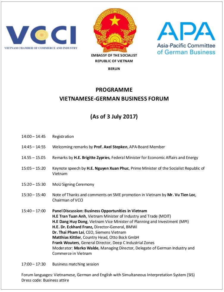 Việc đòi lại giấy mời cá nhân là một chuyện, nhưng ngay hôm sau, chỉ ít giờ trước khi khai mạc Diễn đàn doanh nghiệp Việt – Đức ngày 6/7/2017 tại khách sạn Marriott, Berlin. Tham tán Bùi Hà Nam đã gửi văn bản hủy nốt giấy mời tham dự Diễn đàn kinh tế, mà trước đó đã gửi cho doanh nghiệp kiều bào cùng các đối tác Đức, làm cho chương trình và mọi sự chuẩn bị trước đó, với mục đích kêu gọi một số doanh nghiệp Đức cùng tới hội nghị này để tìm hiểu đầu tư vào vùng quê nghèo miền trung phải dừng lại.