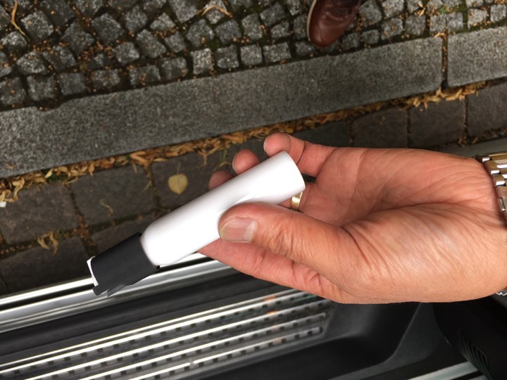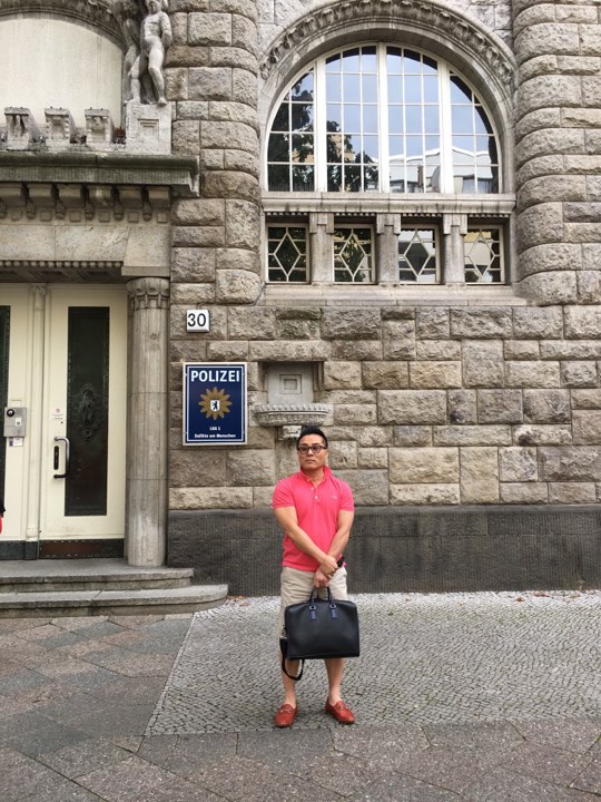ông Bùi Quang Hiếu trước trụ sở Cảnh sát số 1 tại Berlin hôm 1.9.2017 để chuẩn bị nhận lại xe.
