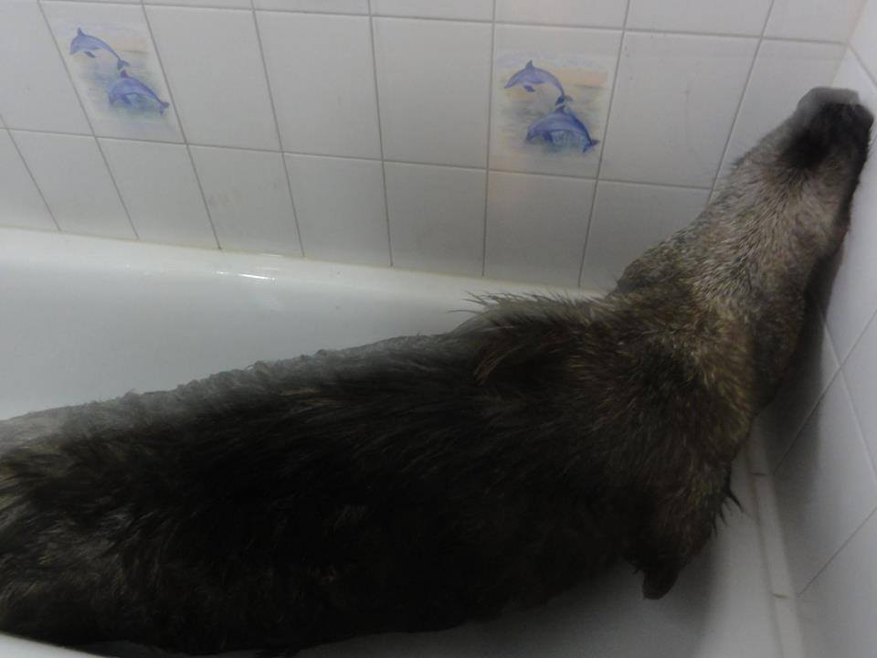 Die Badewanne, die eigentlich für den Menschen zum Duschen und zum Entspannen gedacht war, wird zunehmend zu einem idealen Werkzeug, um die Wildschweine im tiefschwarzen Blut zu tränken.